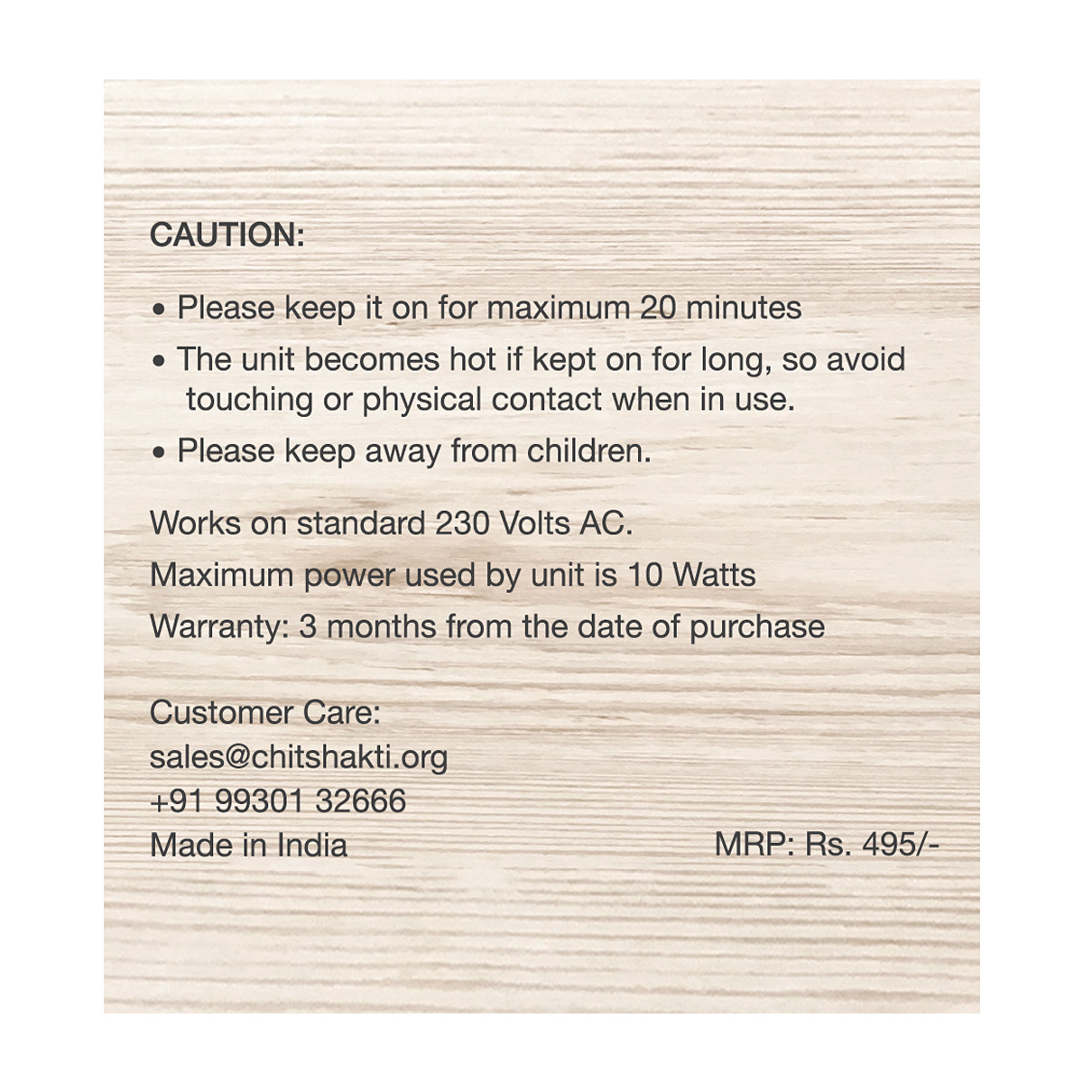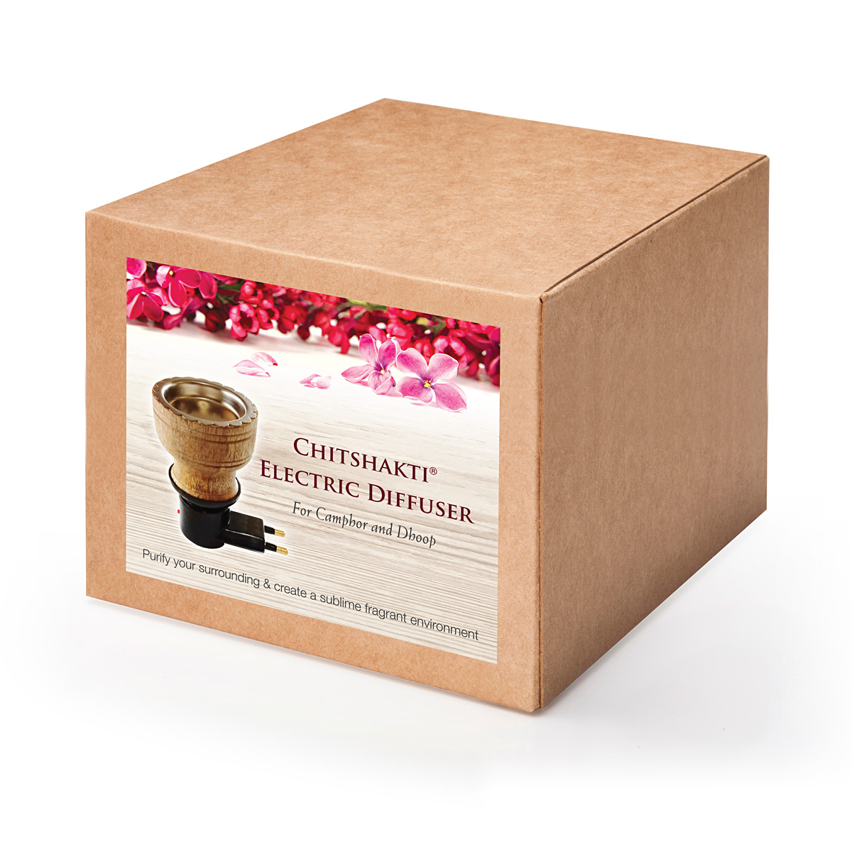 Chitshakti’s new electric diffuser has a copper circuit. Its body is made up of high-grade material from wood and polycarbonate material, it won’t deform or melt in high temperature. Our Chitshakti Electric Diffuser can be used to diffuse Chitshakti Bhimseni Camphor and Chitshakti Blue Perl Dhoop.