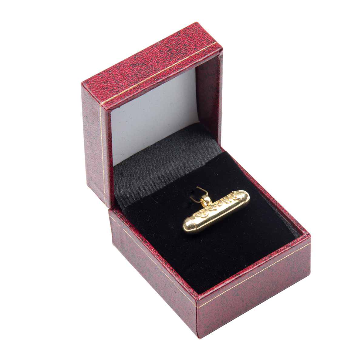 This amulet contains the complete text of Shri Guru Gita, in micro-print. The amulet has a replica of Gurumayi’s signature in devanagari script.