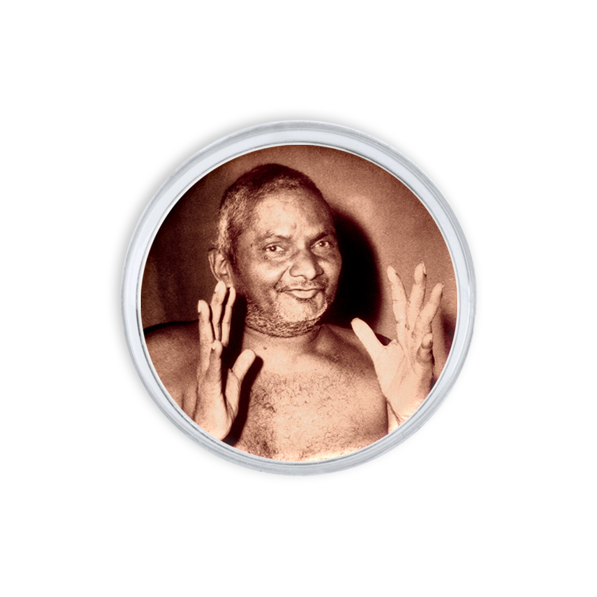 This magnetic small pin with picture of Bhagavan Nityananda can be worn on any clothing.