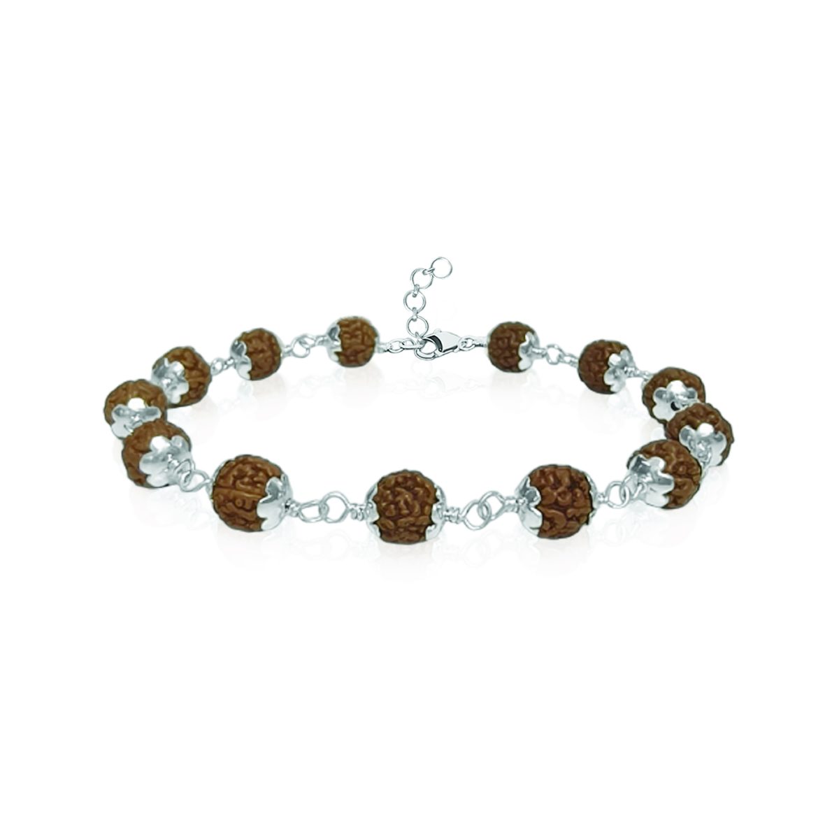 Rudraksha Bracelet – 7 mm Beads, 5 Facet, Silver Cap Bracelet