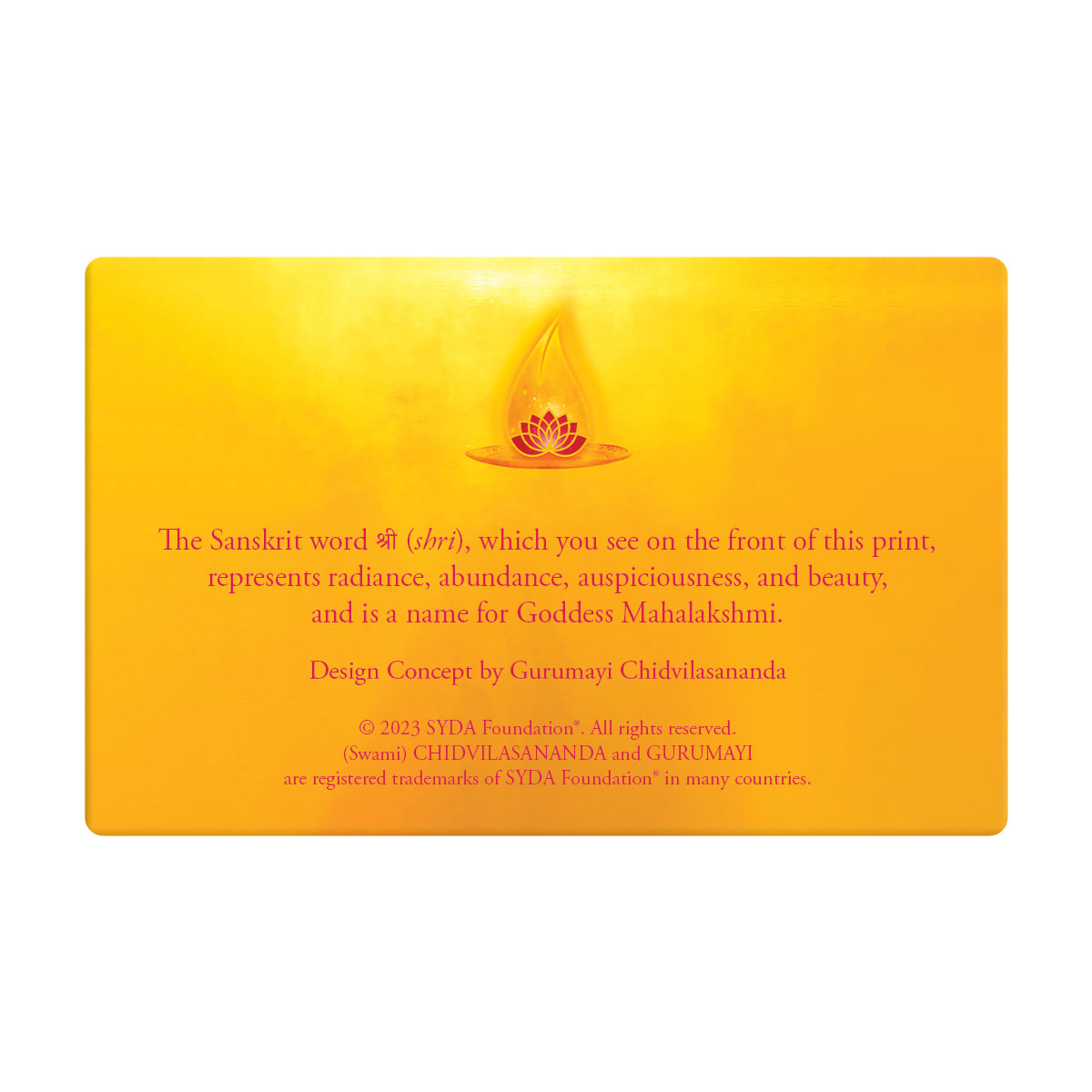 The Sanskrit word श्री (shri) represents radiance, abundance, auspiciousness, and beauty and is a name for Goddess Mahalakshmi.